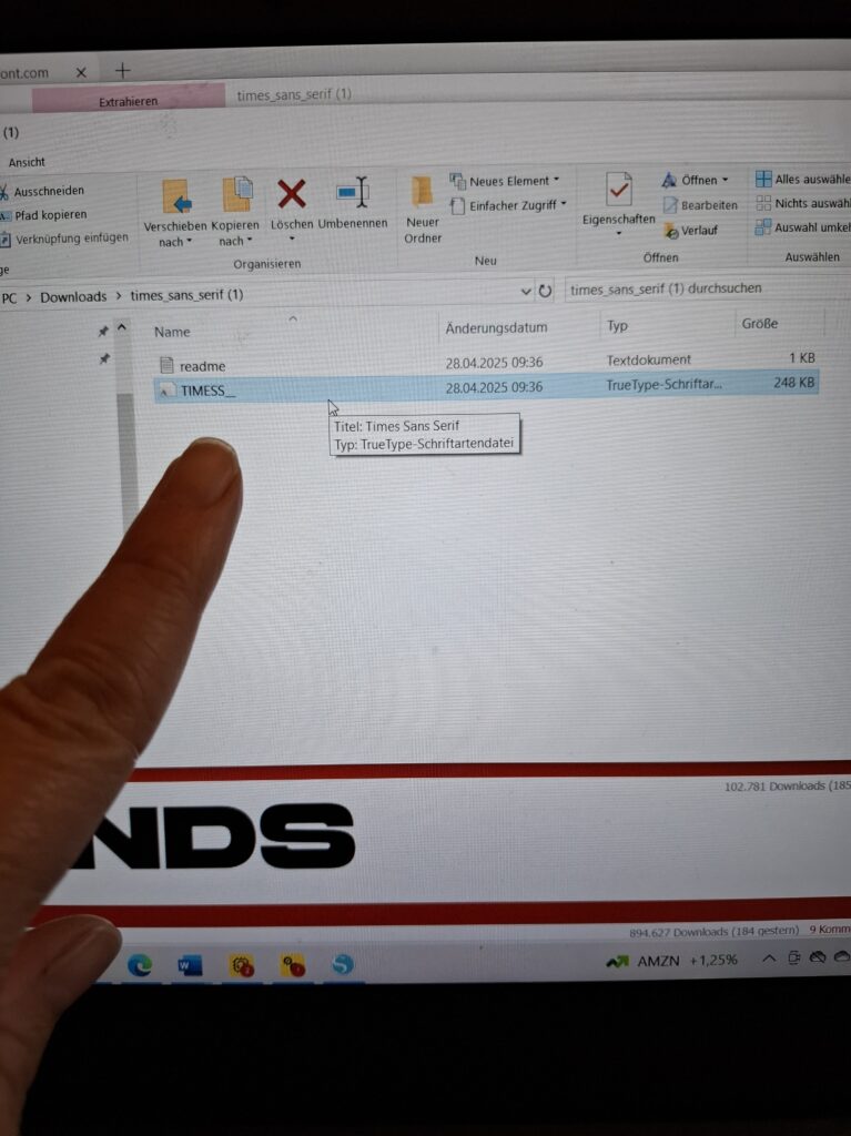Für diesen Plott bin ich auf die Seite dafont.com gegangen und habe mir die Schriftart „Times Sans Serif“ runtergeladen.